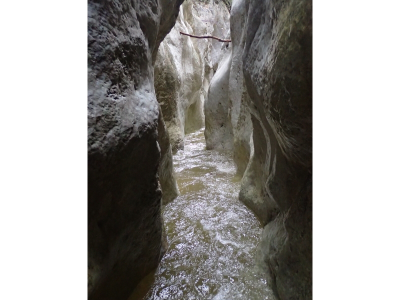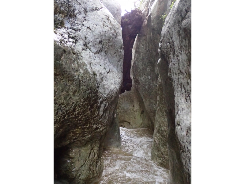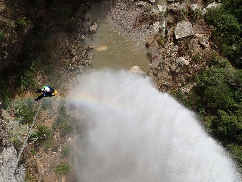 Le plus impressionnant de la région. Le Canyon de Pissevieille est situé à l’entrée des Gorges de l’Ardèche, à deux pas de Vallon Pont d’Arc, une véritable entaille dans le massif calcaire des Gorges, ce canyon sauvage offre un paysage minéral aux formes invraisemblables. La progression technique s’effectue dans une superbe étroiture ponctuée de petits sauts, tobogans, tyrolienne et jolis rappels. Le rappel final de 80 mètres en fil d’araignée est à couper le souffle ! Malheureusement l’eau n’y est que rarement présente, sauf après de forts épisodes pluvieux. Cela étant, nous pouvons le descendre à sec, ce qui peut permettre de pratiquer les techniques de corde, par exemple en introduction à un stage Canyon perfectionnement.